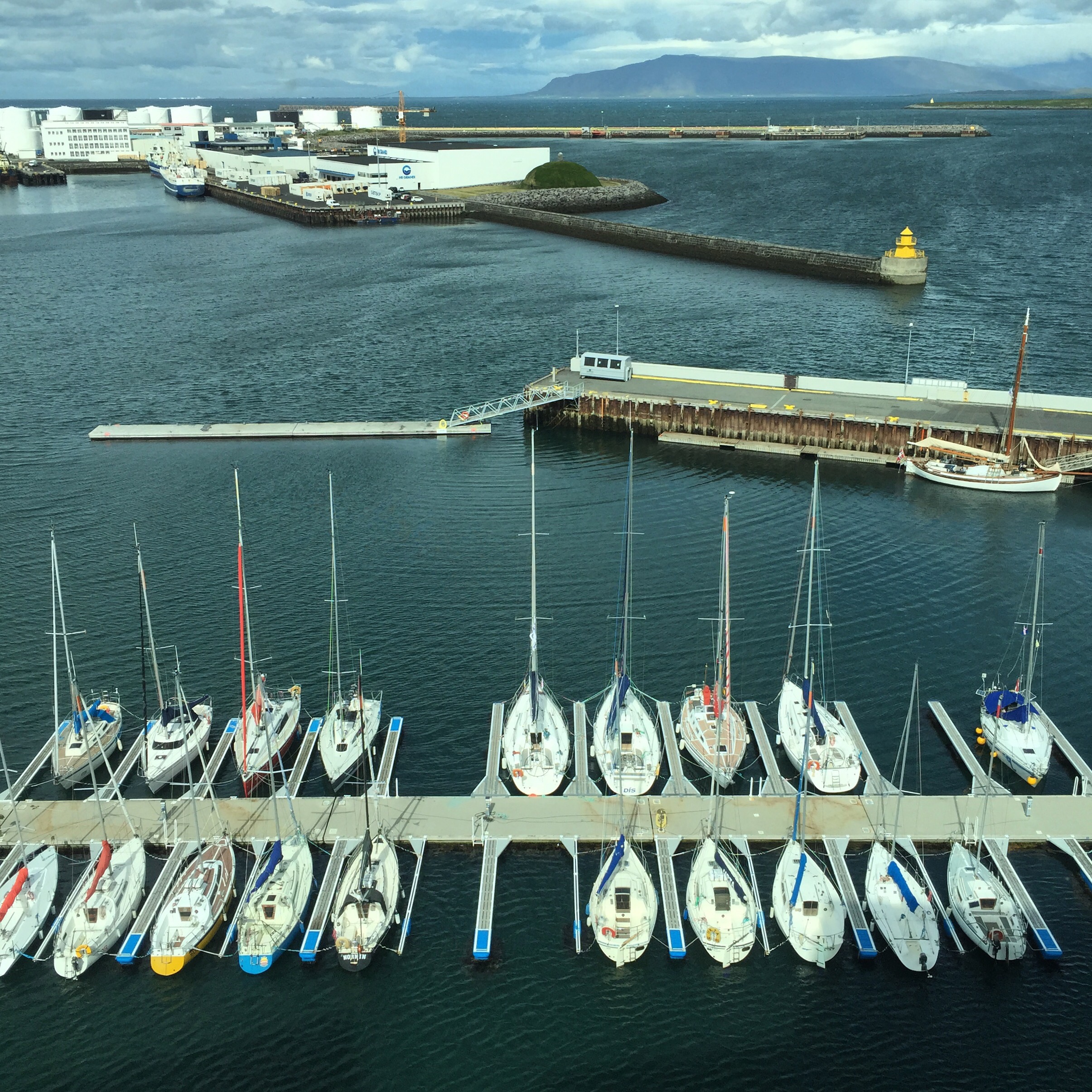 Boats from the window at Harpa.